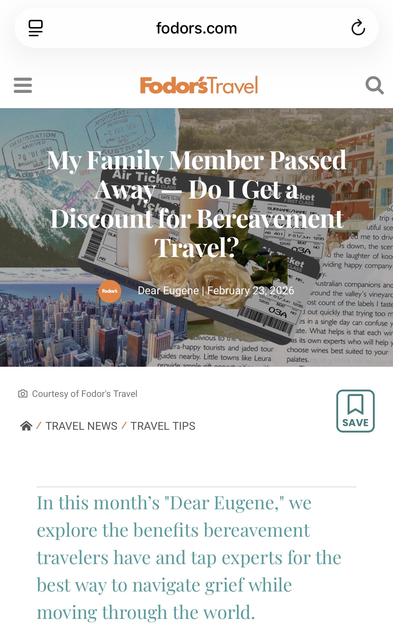 Fodor’s Travel features Toni Filipone of MasterGrief: she shares practical guidance for bereavement travel, including airline fare flexibility, in-flight nervous system support, and simple ways to stay grounded while traveling through grief.